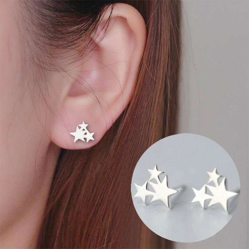 Серьги-гвоздики женские маленькие в виде самолета, призрака, звезды, Луны, корейский Серебряный цветов