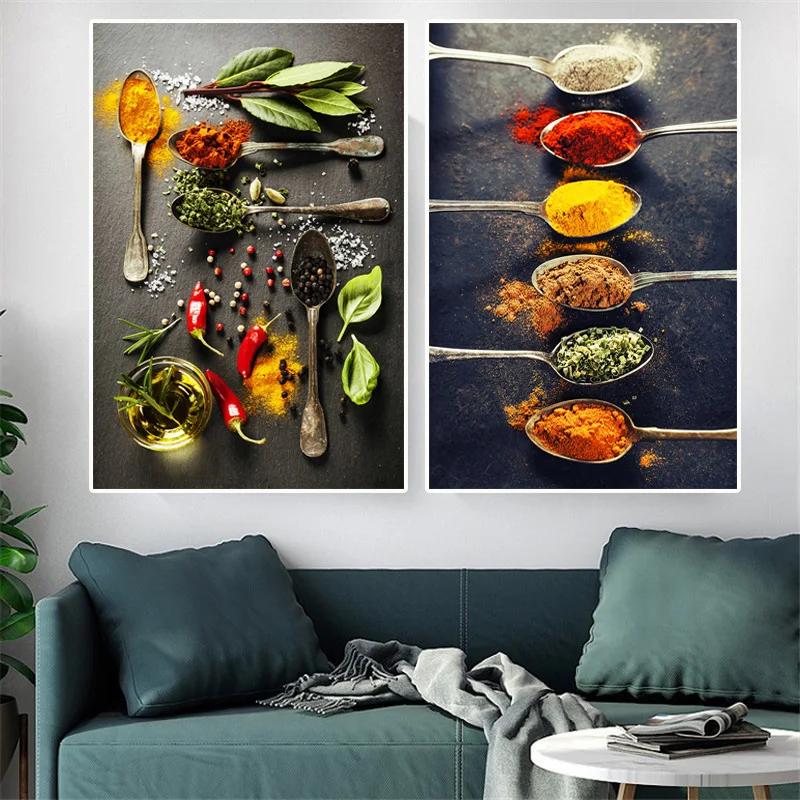 Кухня Еды Холст Картина зерна ложка для специй ROS скандинавские пл...
