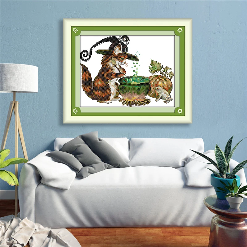 Радость воскресенье Хэллоуин кошка узоры 14CT 11CT счетная Печать на холсте DMC наборы для вышивки крестиком DIY Ручная вышивка рукоделие