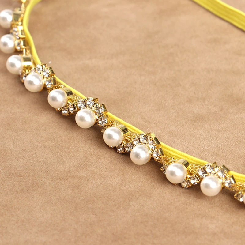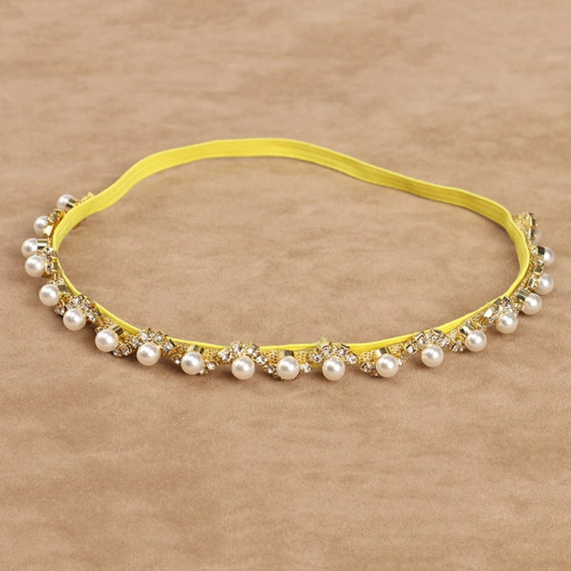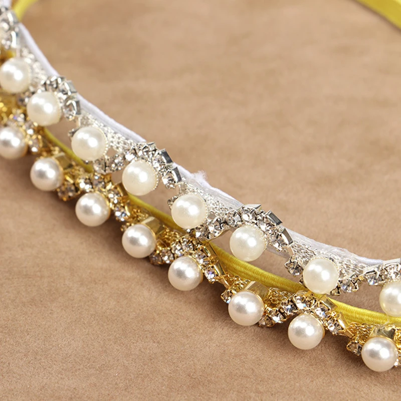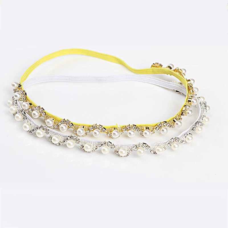Повязка на голову детская из нейлона, с жемчугом и бриллиантами, оголовье для девочек