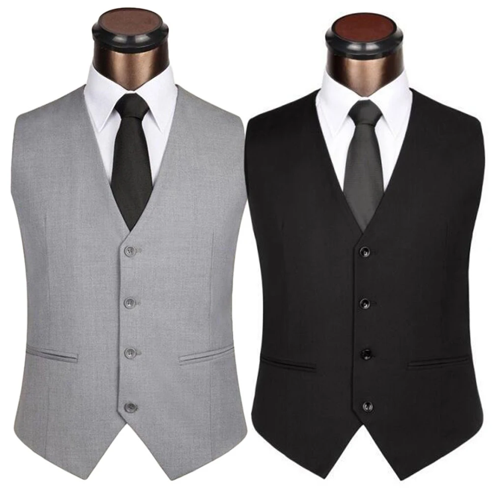 Жилет Мужской без рукавов, однобортный приталенный деловой жилет на бретелях, однотонный, для свадьбы, 2020