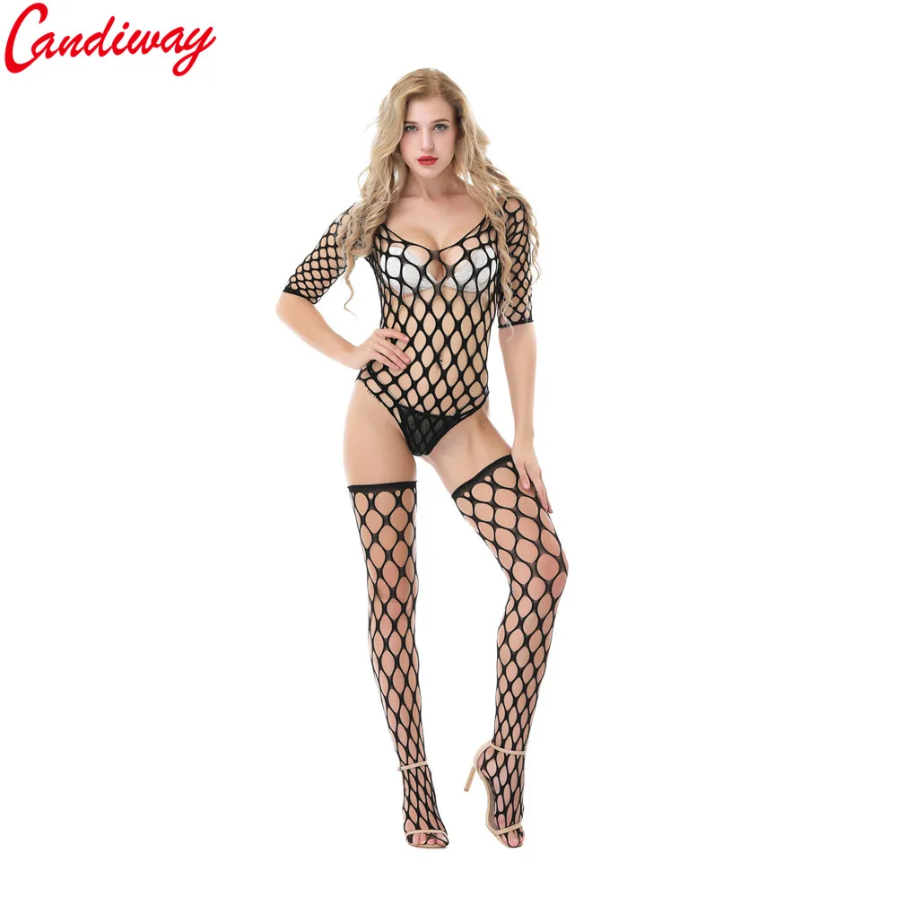 Candiway черный сексуальный боди Тедди с открытой спиной нижнее белье Глубокий v-образный вырез ажурное Сетчатое Эротическое белье костюмы костюм чулки Трусики