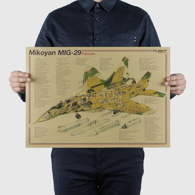Mikoyan MIG 29дизайн знаменитого оружияистребителькрафт-бумагаплакат для бара настенные наклейкиРетро плакатдекоративная живопись 51x35,5 см