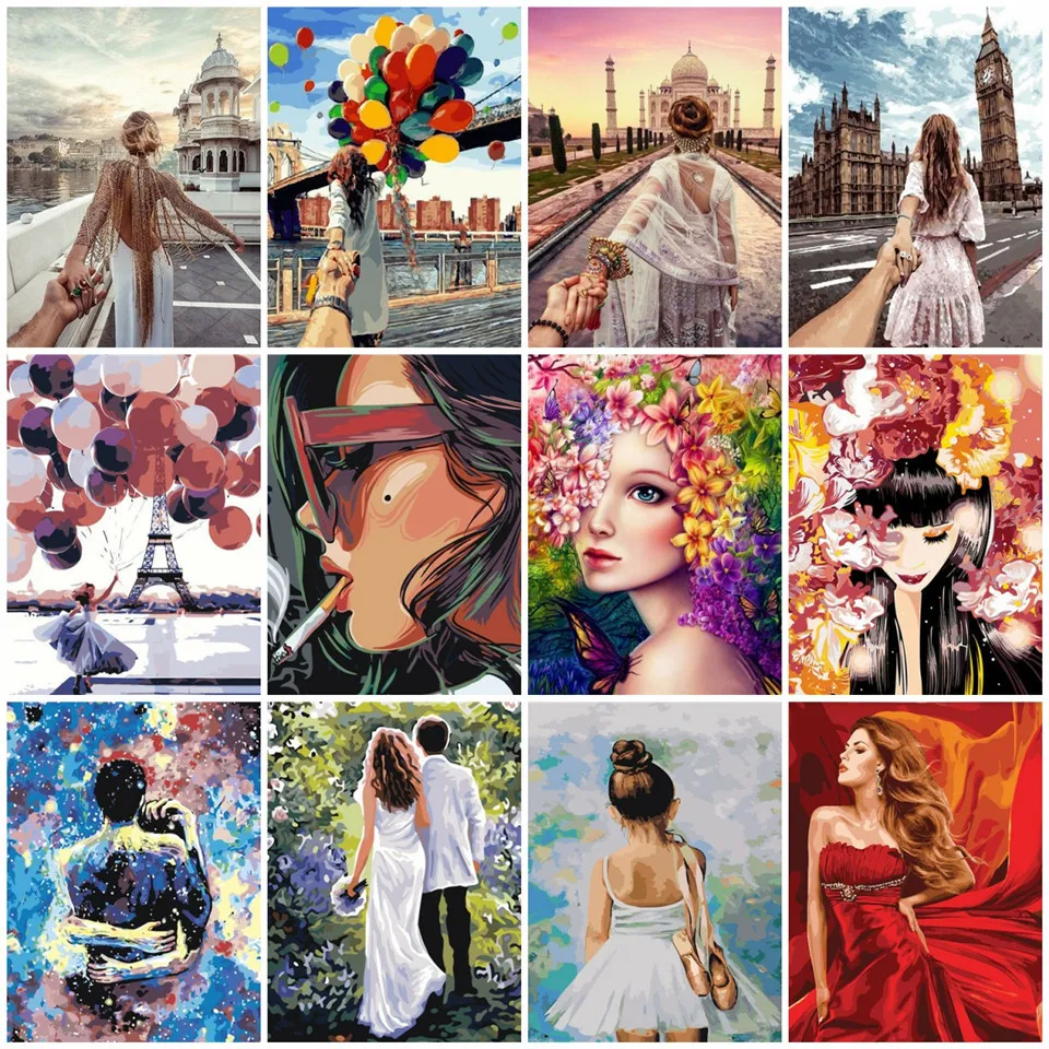 AZQSD краска по номеру Diy девушка холст краски ing наборы Декор дл...