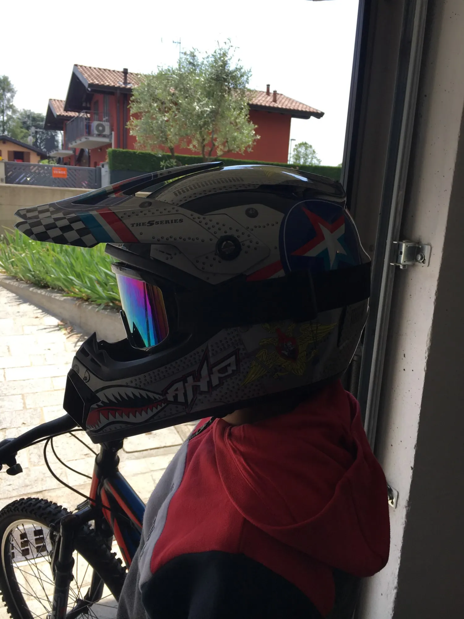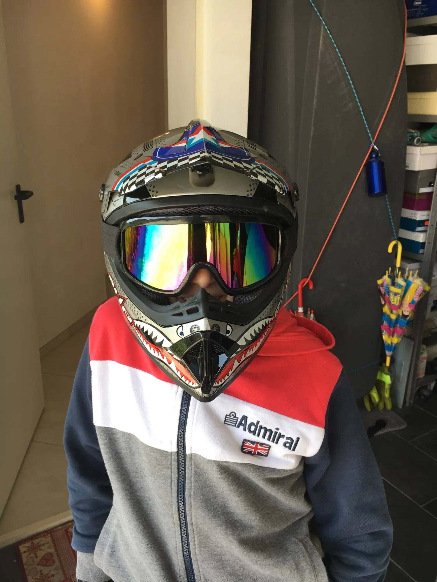 Это не шлем, а бутафория. Еще и низкого качества. Резинка наполовину отклеена( которая опоясывает визор. Размер "М" на ребенка лет 10-12.