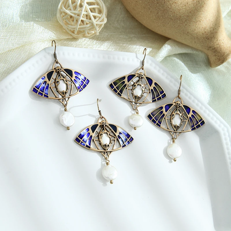 2020 серьги-капли в стиле "панк" для женщин Красочные насекомое с эмалевым покрытием моли культивированный жемчуг кристалл неоготический череп винтажные модные ювелирные изделия