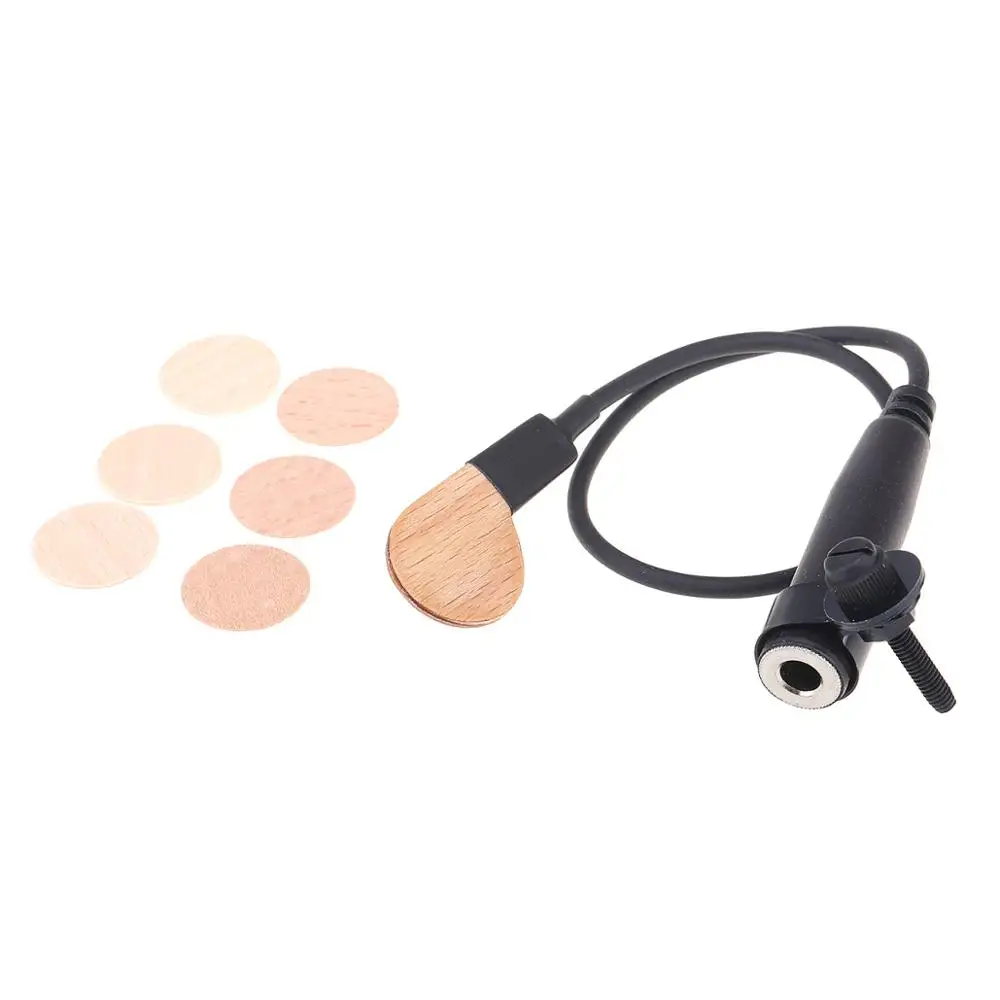 Деревянный пьезодатчик устанавливается в гнездо для глаз моста, удерживаемое на месте с помощью трения. Аккуратные шимовые диски обеспечивают идеальную посадку