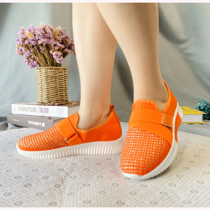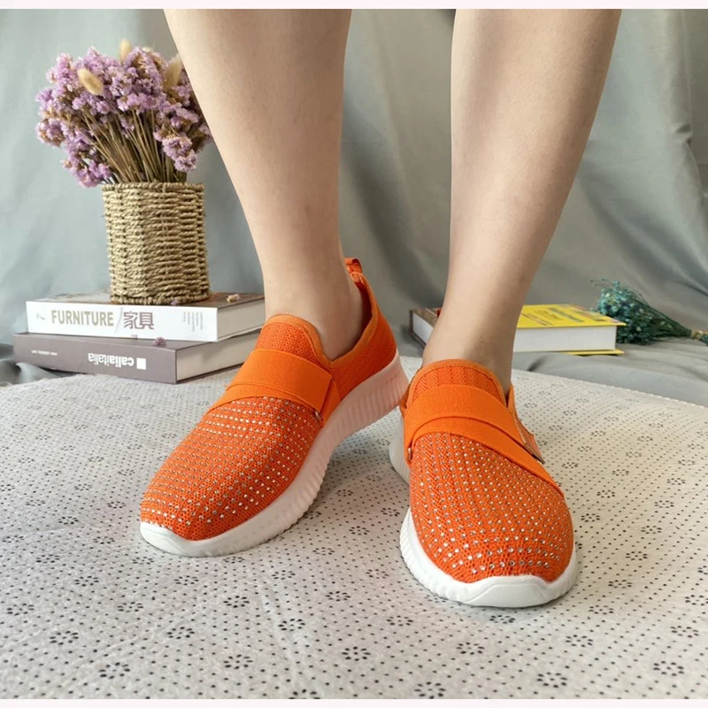 2020 женские кроссовки; Женская дышащая Спортивная обувь из сетчатого материала; Женские стразы на платформе; Женская Удобная Обувь на вулканизированной подошве