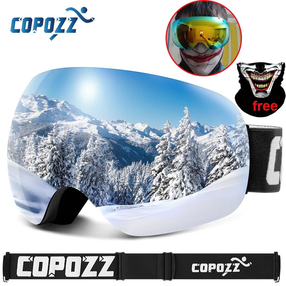 Сферические безрамные лыжные очки COPOZZ, очки для катания на лыжах, для большого лица, для снегохода, UV400, противотуманные очки от снега, сноуборда Google