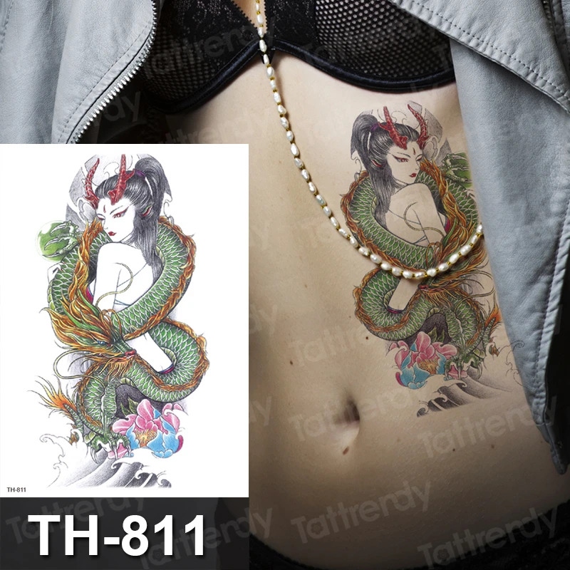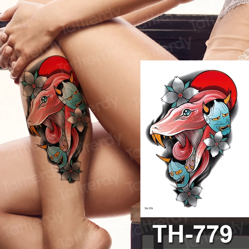 Татуировка рукав узор Змеиный пион цветы лиса девушка водонепроницаемый временный рукав рука Татуировка сексуальный боди арт стикер лист тату подделка