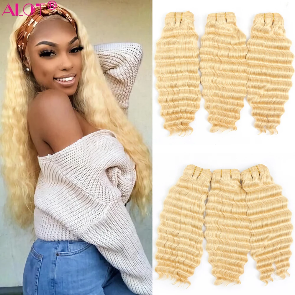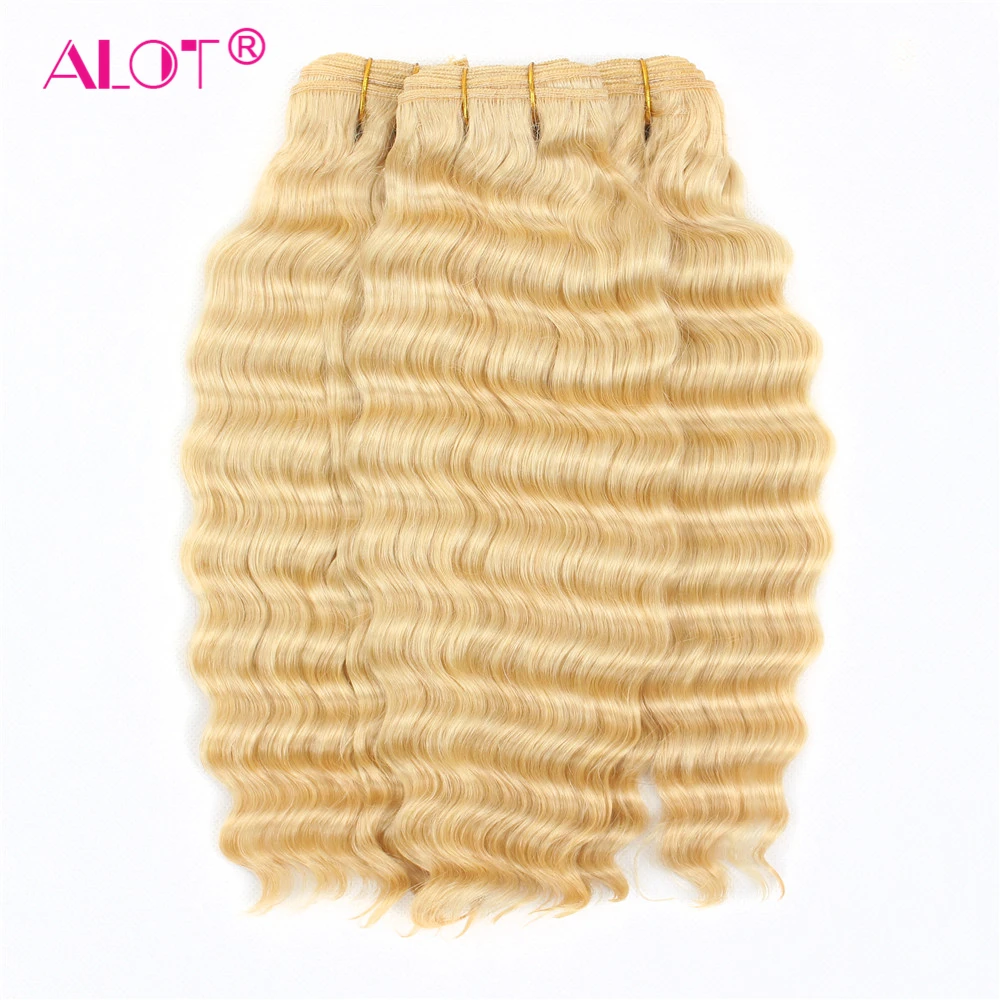 Светлые бразильские волосы для наращивания, 613 натуральные волнистые волосы, 1, 3, 4 пучка, Реми, 100%