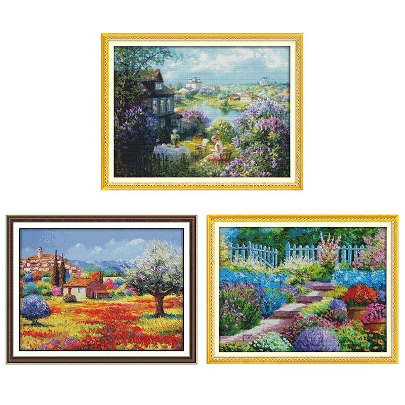 Набор для вышивки крестиком Aida14ct 11ct, Красивая красочная пасторальная пейзажная живопись, Набор для вышивки крестиком