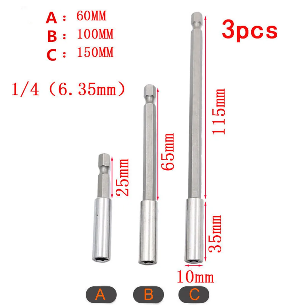 Магнитная отвертка Extension 3 шт. 60/100/150 мм Quick Release 1/4 Инструменты Набор бит
