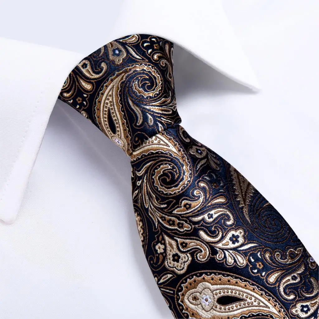 DiBanGu дизайнерский мужской галстук золотой синий Пейсли Свадебный галстук для мужчин галстук кольцо Hanky запонки шелковый галстук набор деловые Вечерние