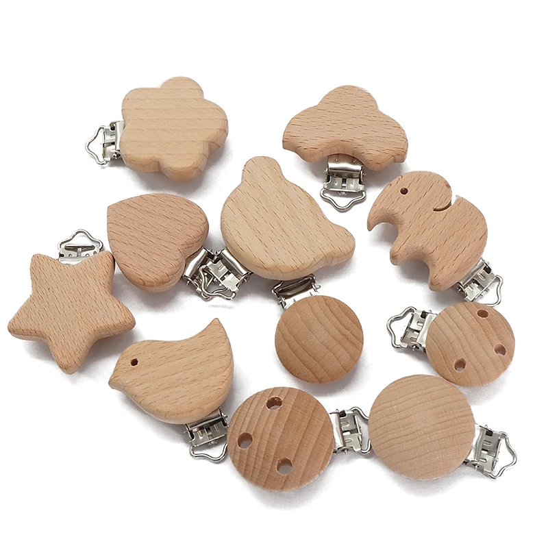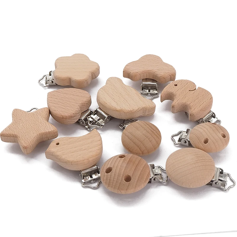 Chenkai 5 шт. деревянный медведь цветок автомобиль сердце птица слон круглые звезды зажимы BPA бесплатно для DIY Baby природа соска цепь подарки
