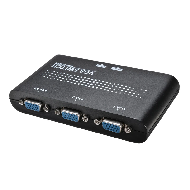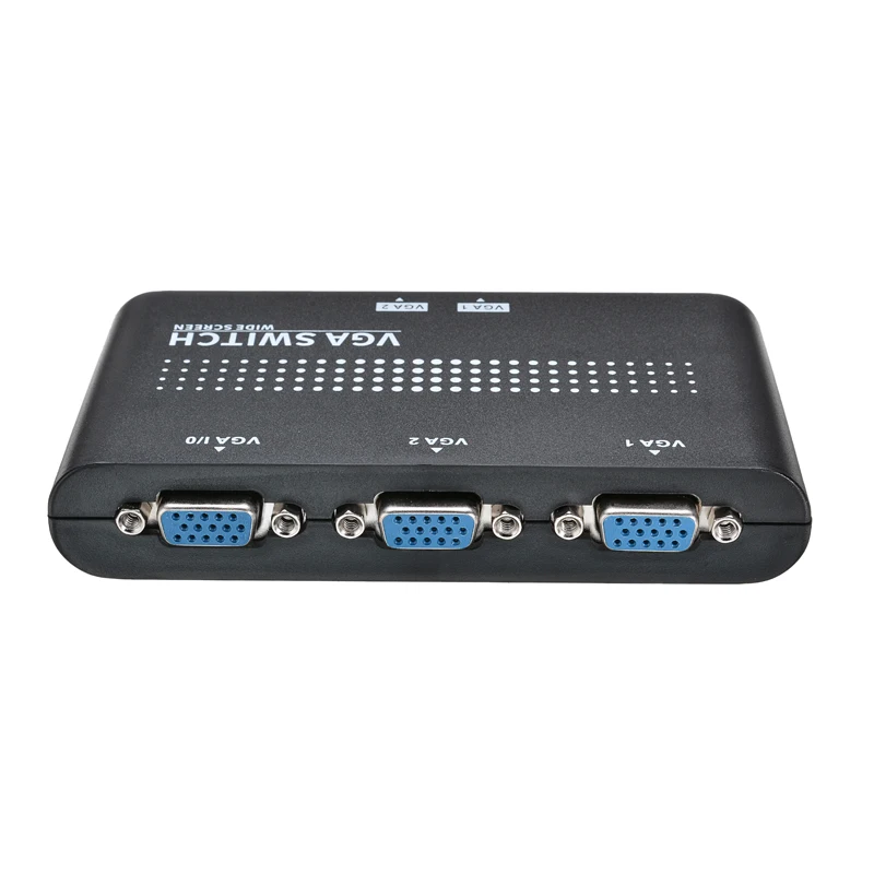 Двухкнопочный переключатель для изменения сигнала VGA. Переключатель VGA может использоваться в настройках безопасности, где требуется мониторинг различных областей здания и переключение между несколькими входами является необходимым.