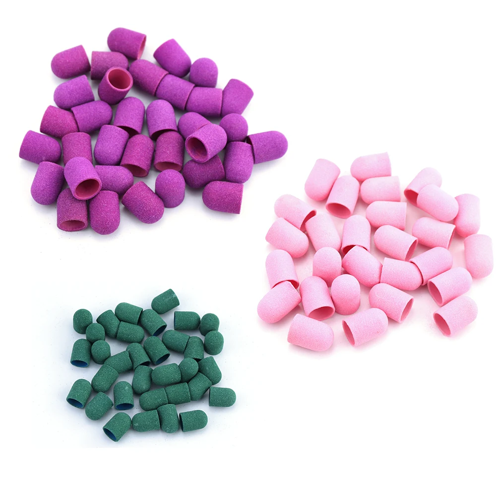 Колпачки шлифовальные для ногтей, электрические, с резиновой ручкой, 10*15 мм, 21 шт.