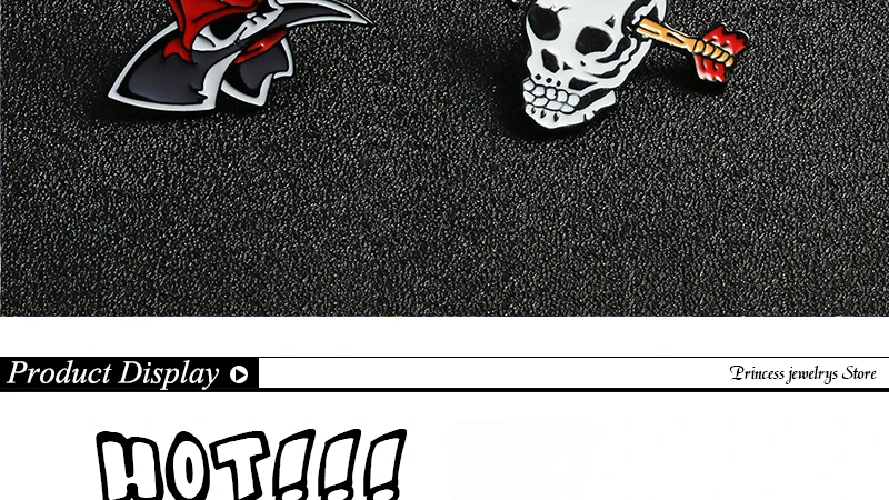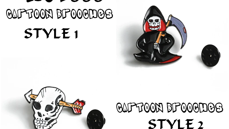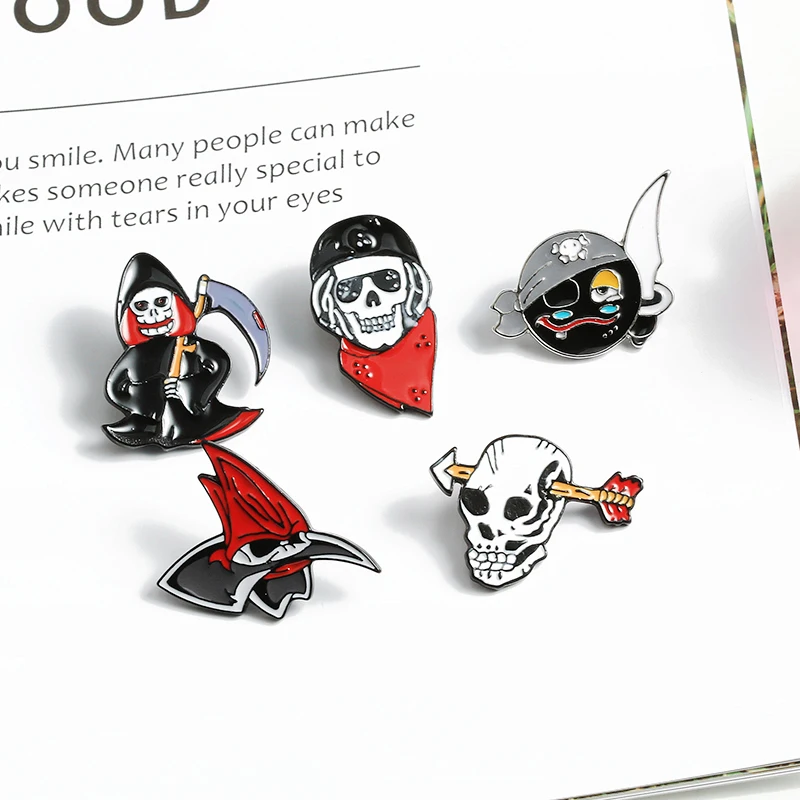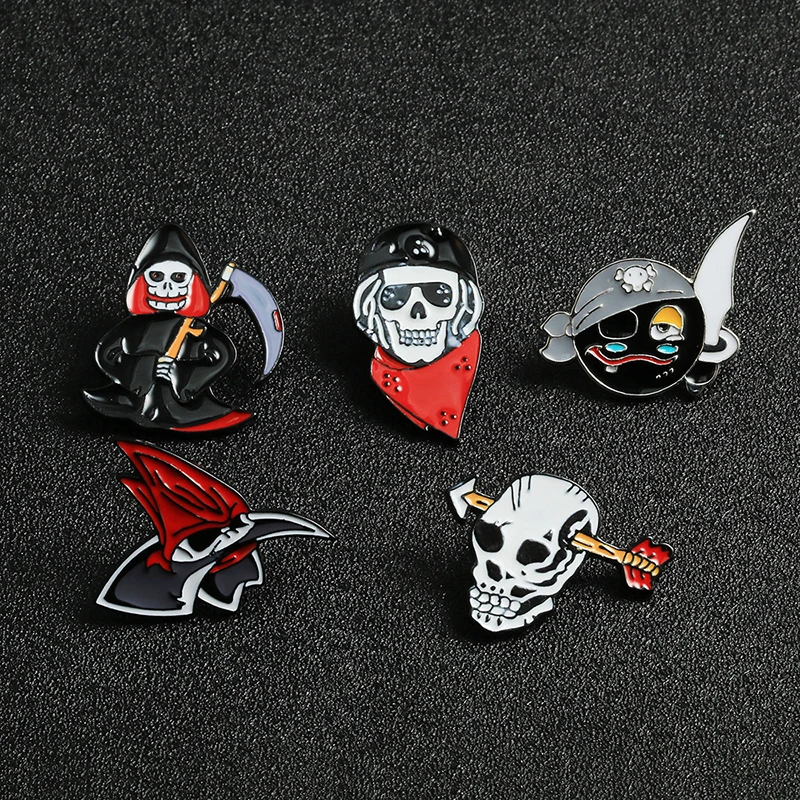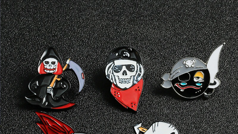 Новинка, эмалированные булавки в стиле панк с черепом, Готическая брошь в виде темного скелета, Пиратская брошь с серповидным отворотом, значок на воротник, детский черный подарок на Хэллоуин