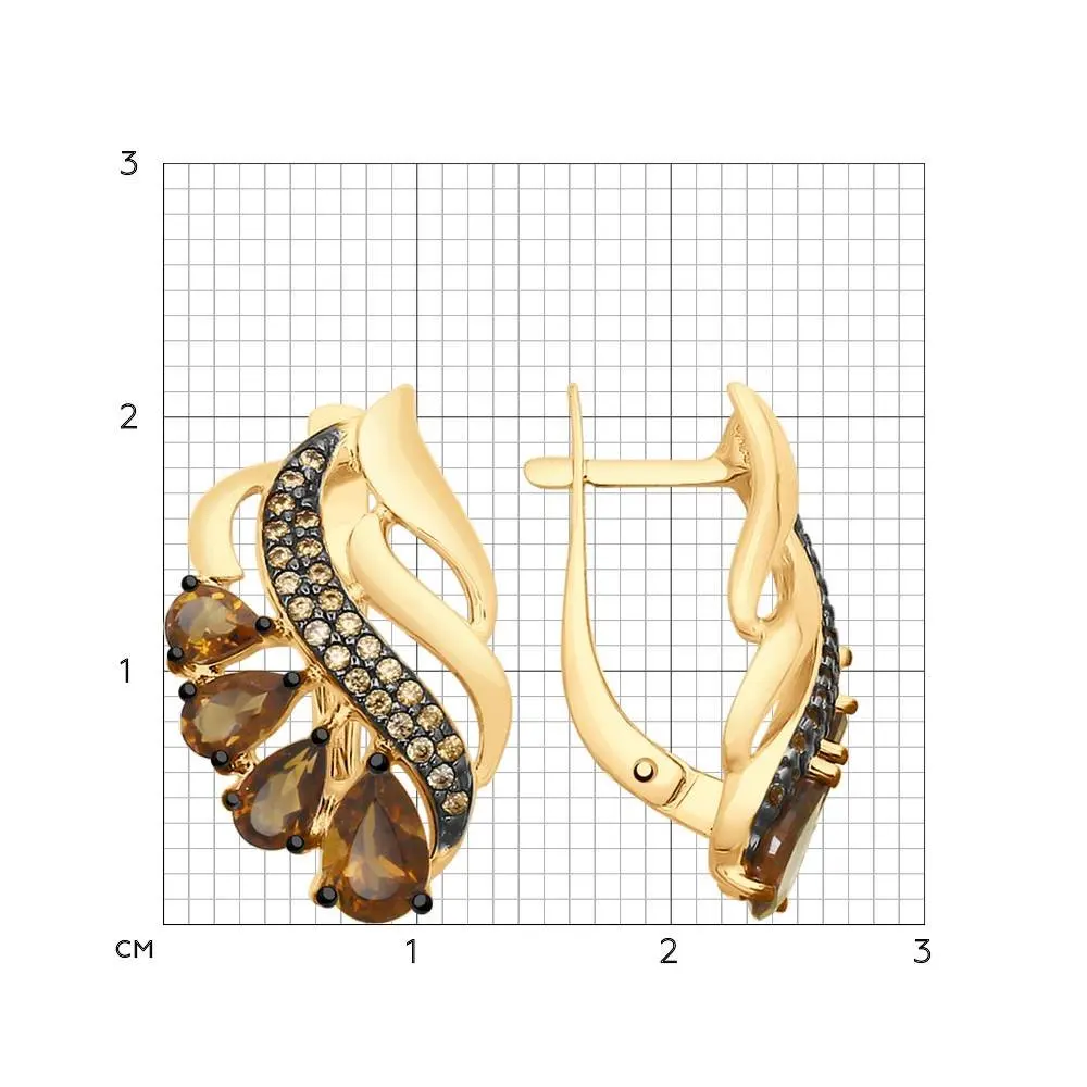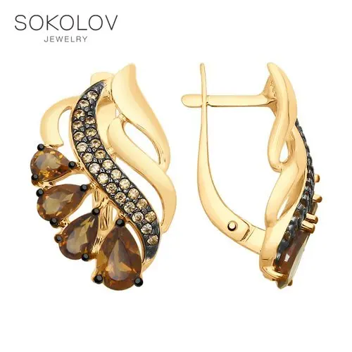 Серьги SOKOLOV из золочёного серебра с раухтопазами и фианитами, Се...