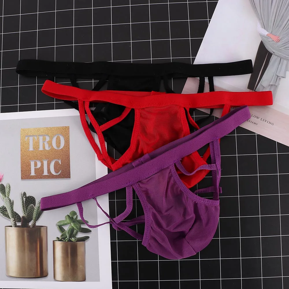 Мужские сексуальные прозрачные дышащие трусики, модное нижнее белье, ажурные трусы, стринги, трусы-Тонг