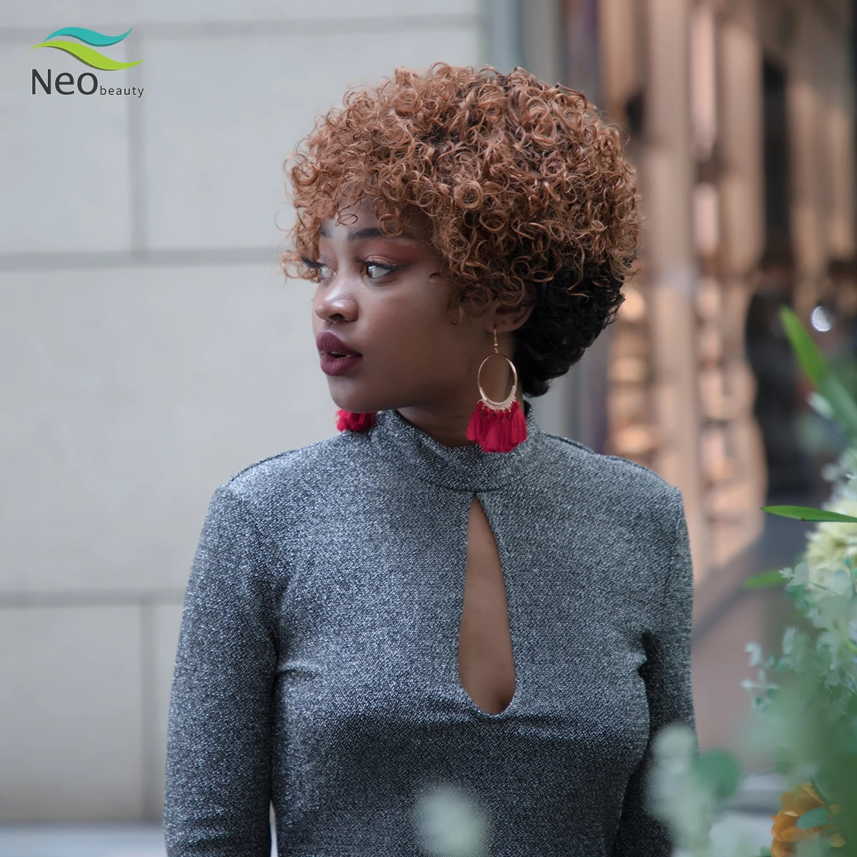 Кудрявые человеческие волосы эльфа, парик для чернокожих женщин, невидимые короткие кудрявые парики