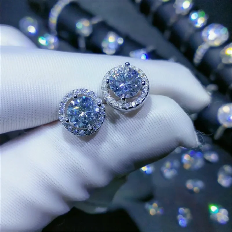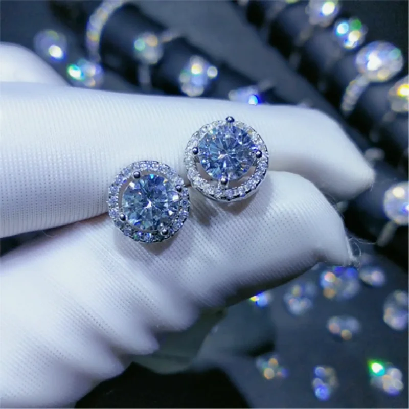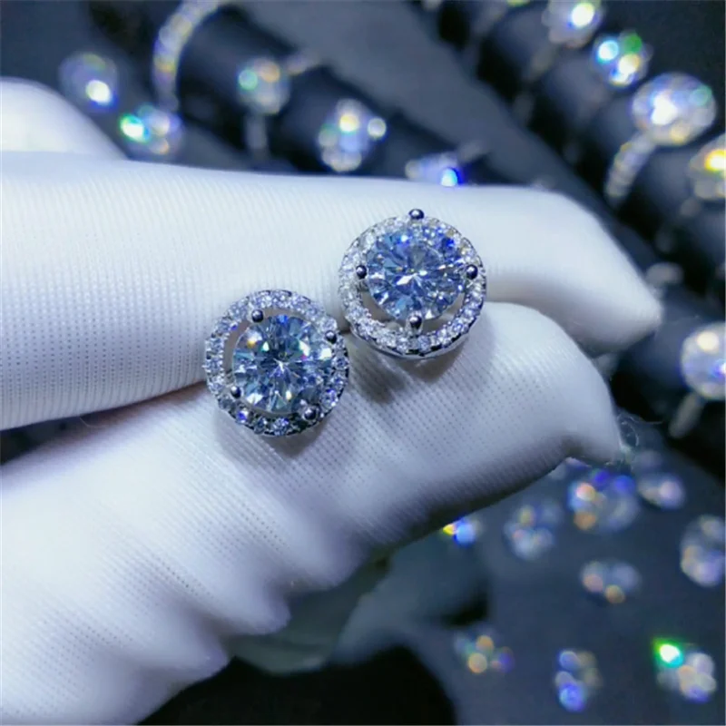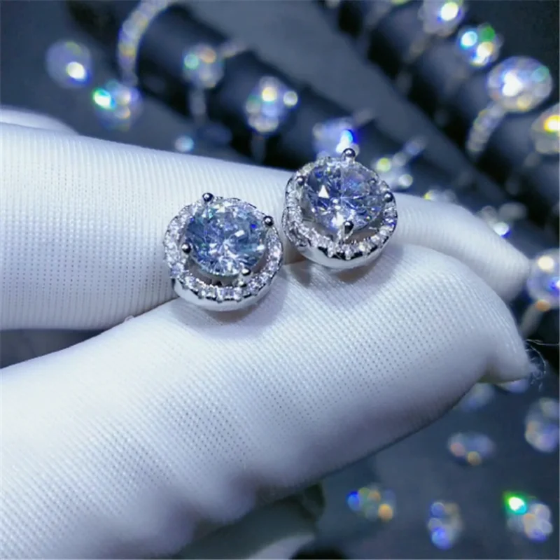 Женские серьги с бриллиантами огранки 1 карат, всего 2 карата серьги-гвоздики с муассанитом
