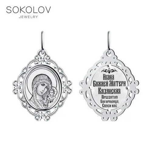 Иконка SOKOLOV из серебра с лазерной обработкой, Серебро, 925, Ориг...