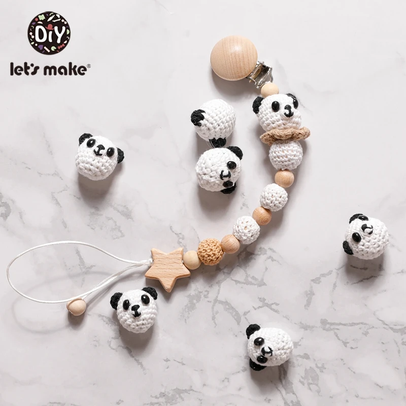 Зажим для соски Let's Make, круглые деревянные гравированные бусины...