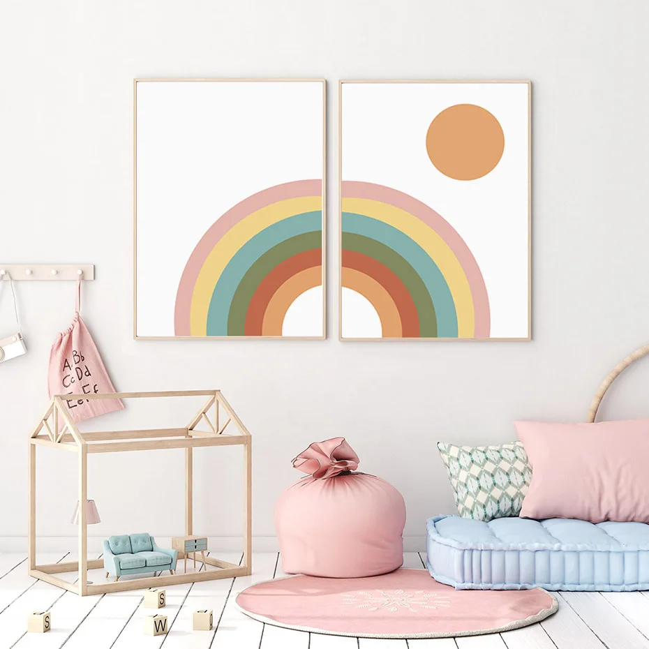 Картина на холсте с изображением радуги, плакат для детской, без рамки