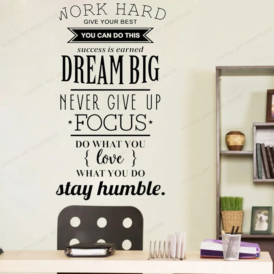 Work Hard DREAM большой никогда не сдавайся Цитата настенная виниловая наклейка офисная Настенная Наклейка для дома Съемная Настенная роспись HJ494