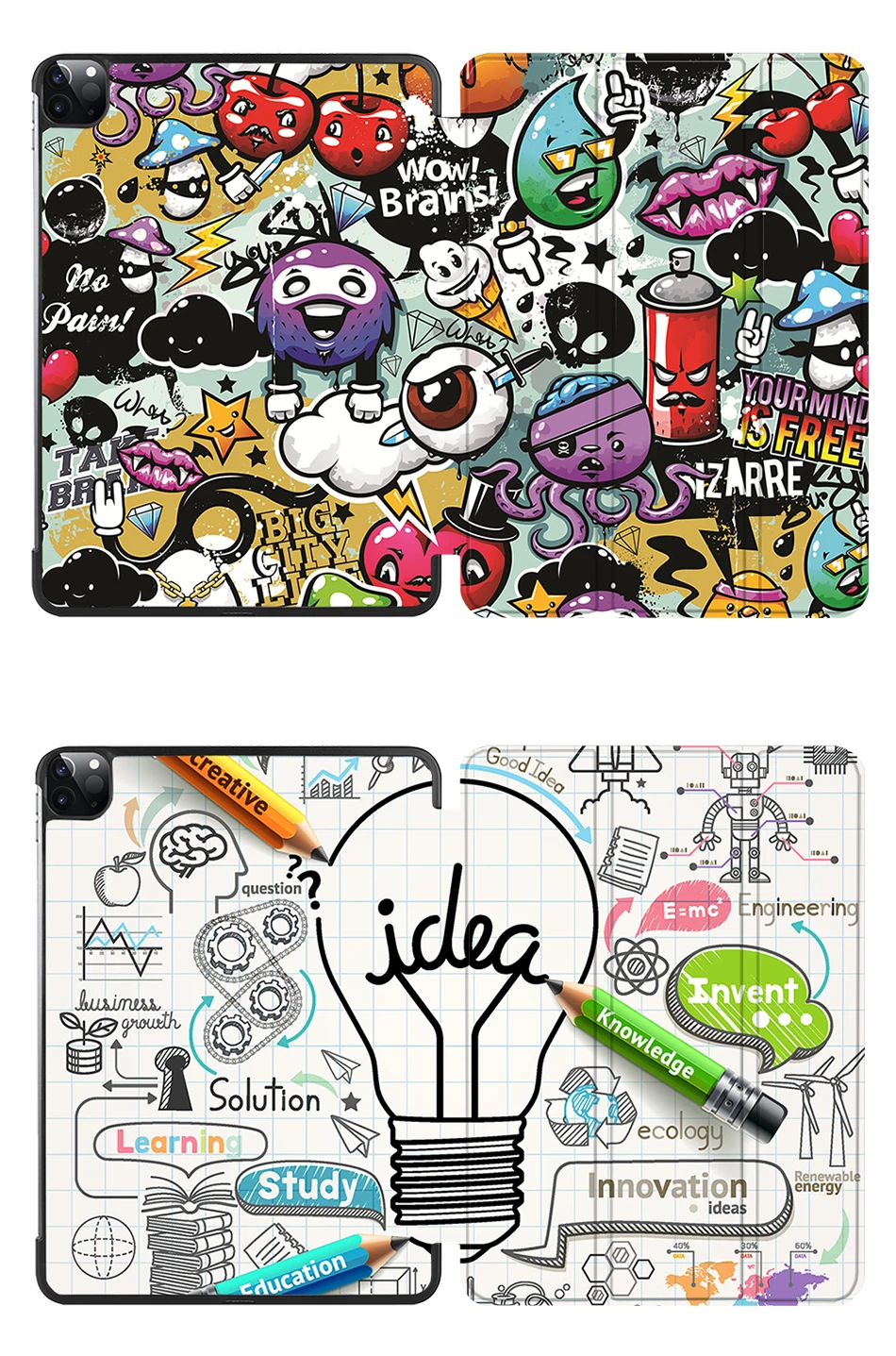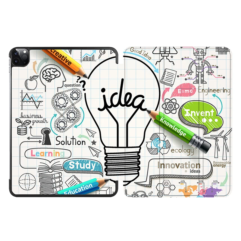 [Трехстворчатая подставка]: Встроенные магниты, складываются в подставку. Трехстворчатая передняя крышка с двумя стоящими позициями для комфортного ввода клавиатуры и просмотра фильмов с углом обзора, который отличается от трехкратного.