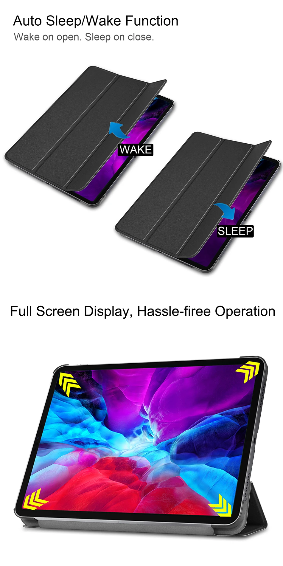 [Автоматическое Пробуждение/сон]: Магнитная функция автоматического сна/пробуждения работает плавно и плавно, чтобы помочь продлить срок службы батареи вашего планшета.
