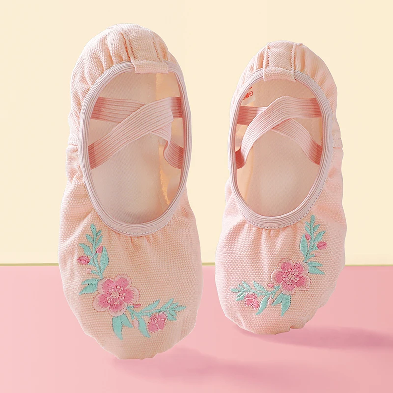 Детская обувь для тренировок; Детские балетки с вышивкой для девочек; Милые парусиновые балетки с цветочным принтом; Обувь с раздельной подошвой