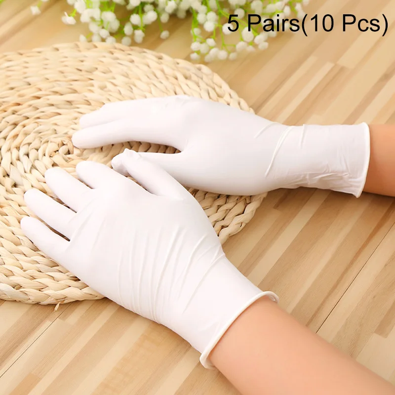 Одноразовые защитные перчатки 10 шт.лот, универсальные резиновые перчатки из латекса для уборки еды, для дома и сада, белые водонепроницаемые перчатки для уборки