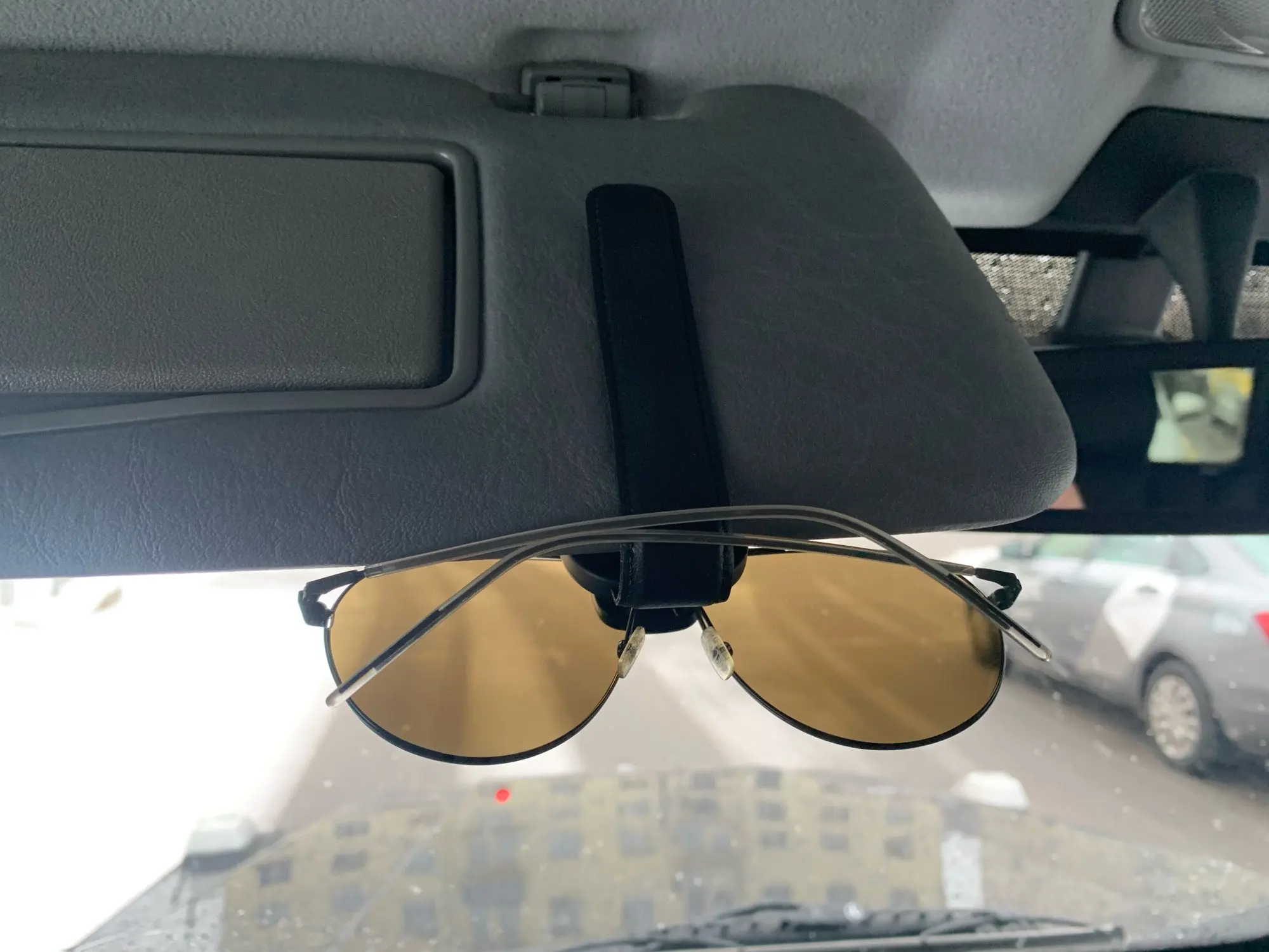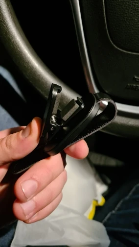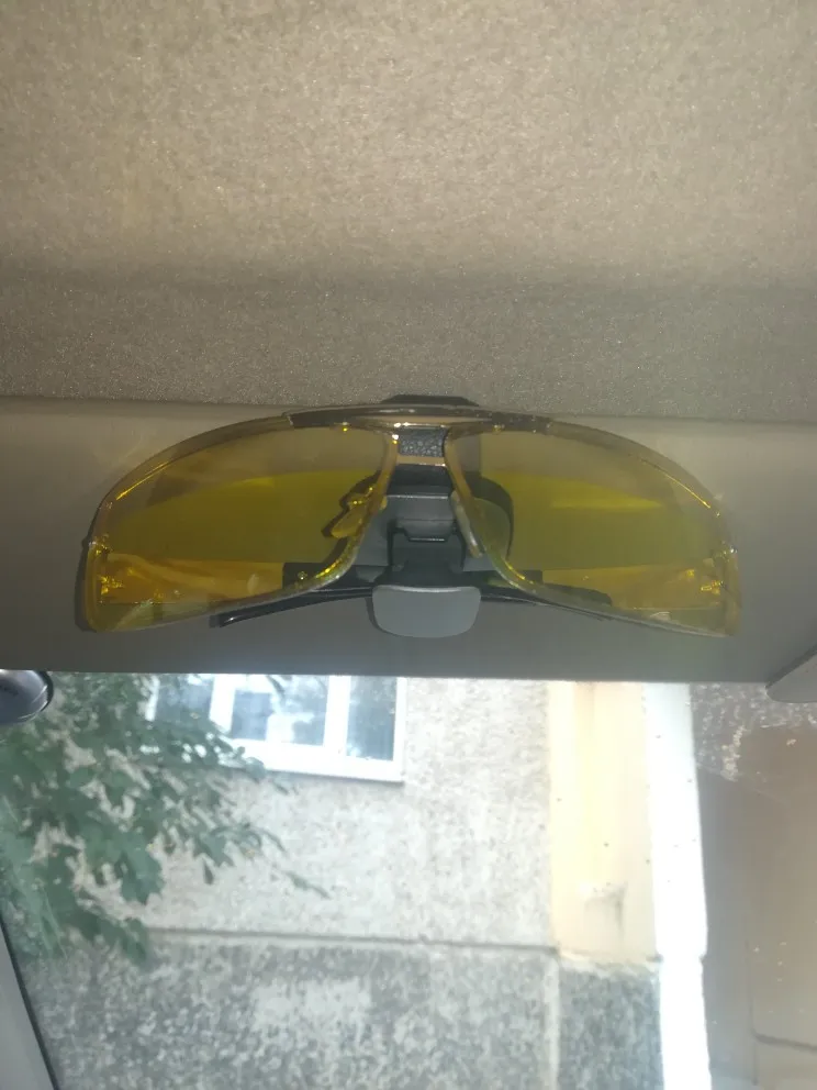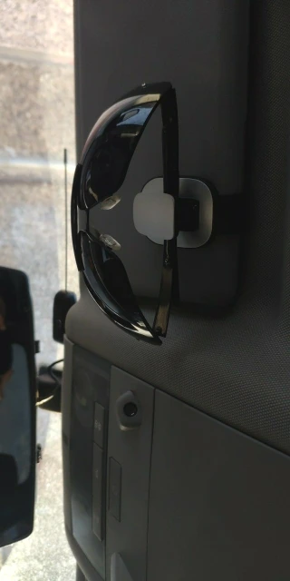 Держатель отличный по качеству! Хотелось бы больших ход для толстых козырьков. У меня козырьки толстые(volvo xc90), с бесполезными кнопками для нашего региона открытия ворот и т.д. Влепил на козырьки со стороны лобового стекла, сидят крепко, очки держат идеально. Рекомендую однозначно!