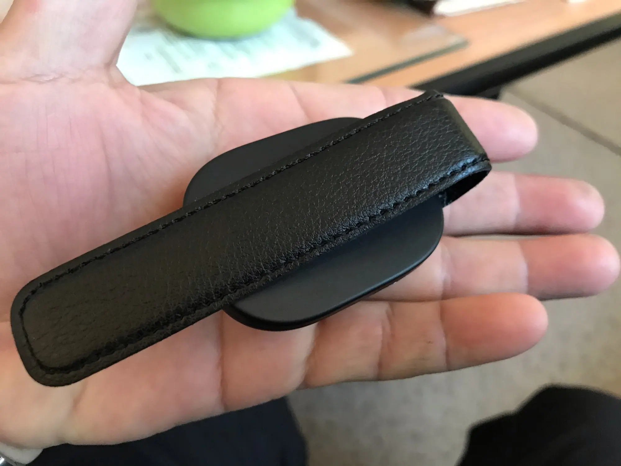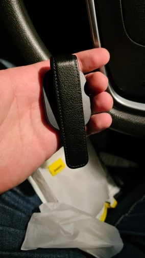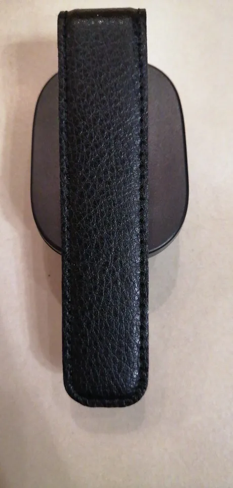 Отличный держатель для очков. У меня в машине используется самый дешевый, за 50 рублей. Не нравится тем, что сильно сдавливает козырек, потом на нем образуются вмятины. Здесь же держатель прижимается с помощью длинной пластины, покрытой кожей. Сам держатель держит плотно, в центре средней жесткости поролон. Покупал по купону за 20 рублей, поэтому никаких претензий быть не может. Доволен. Продавца и товар рекомендую (адекватная цена 200 рублей).