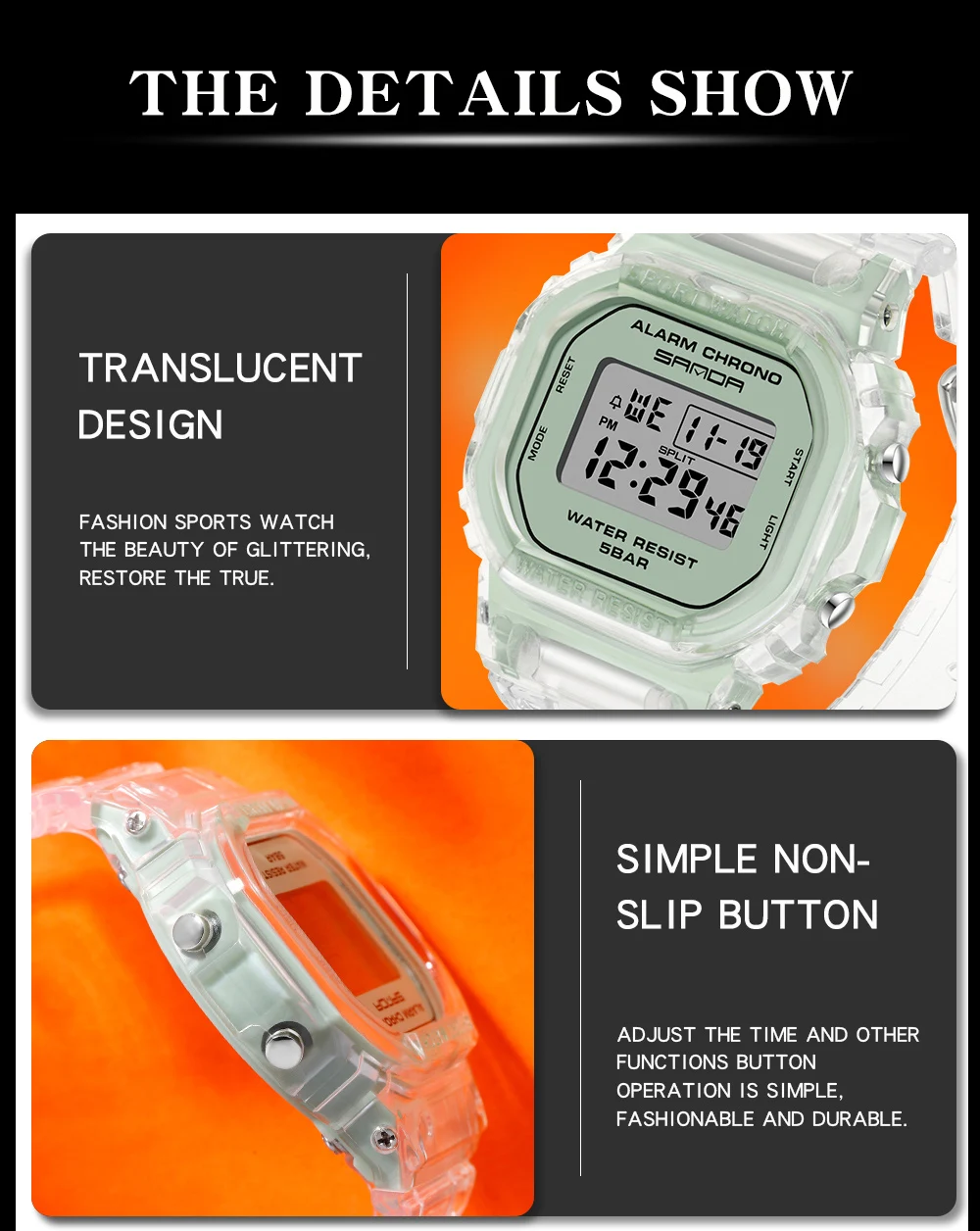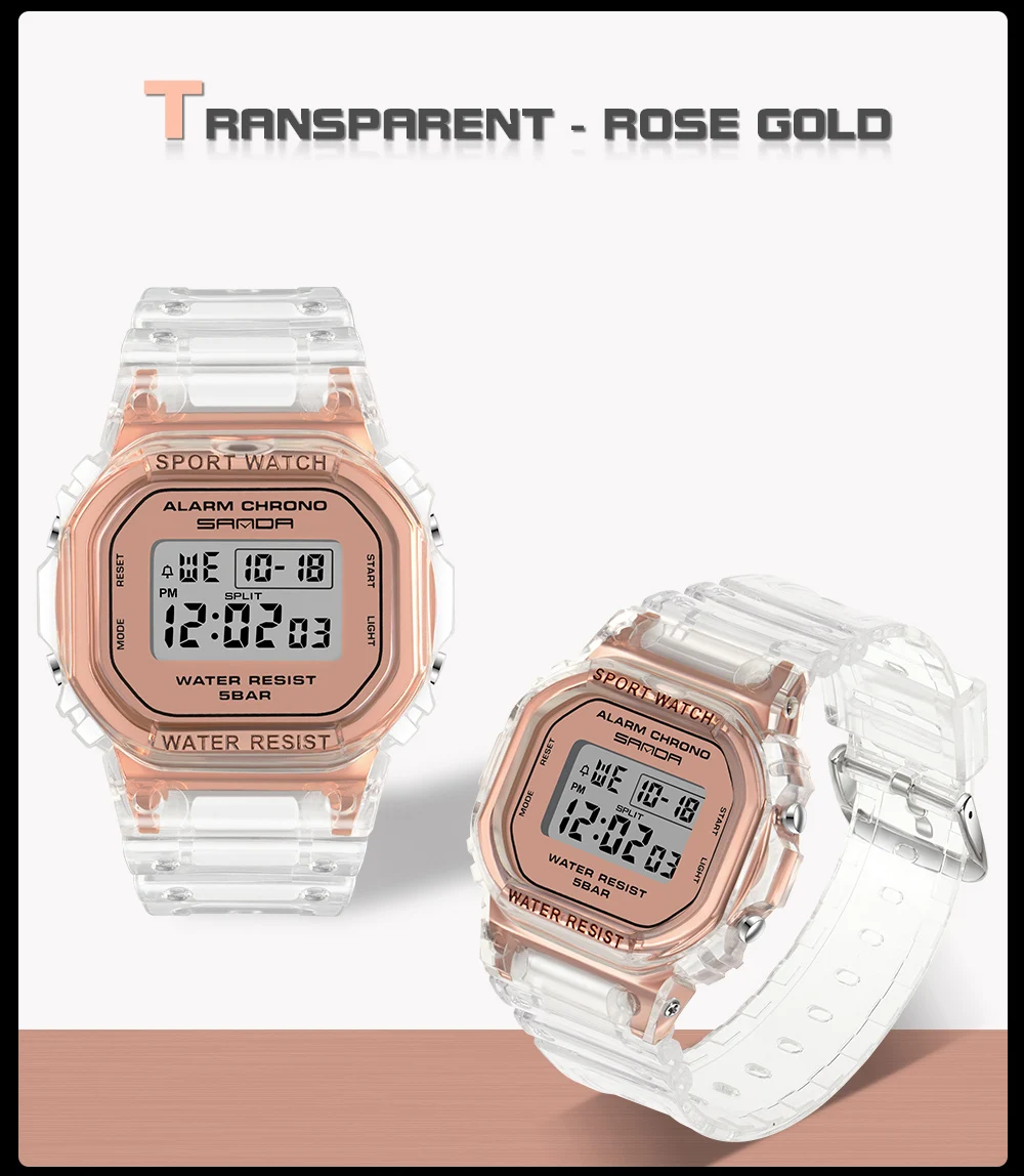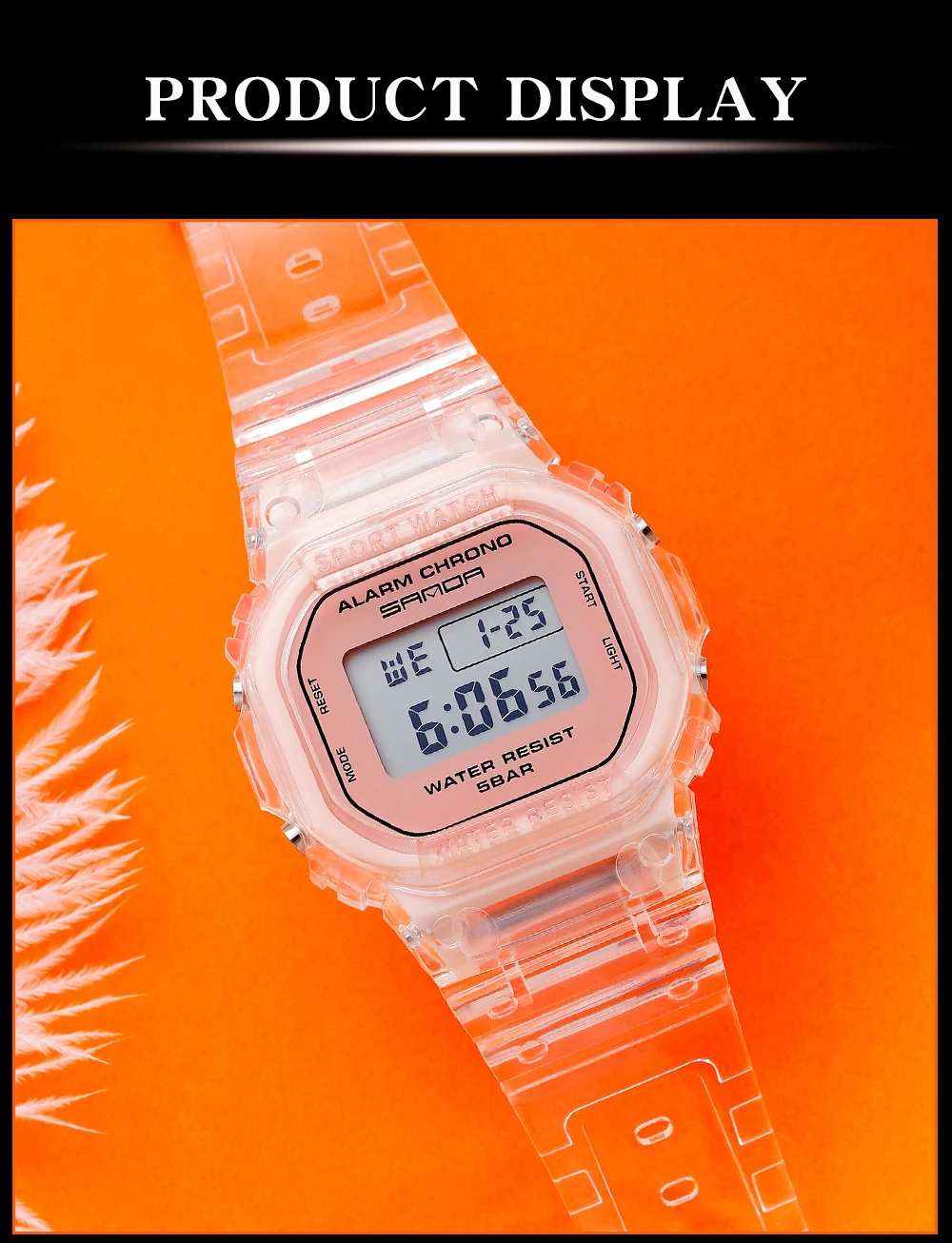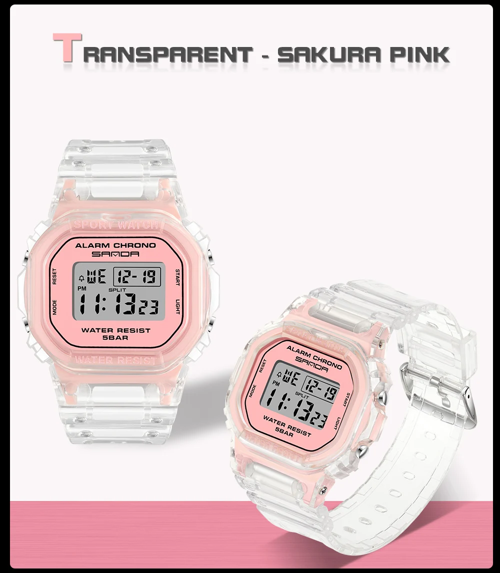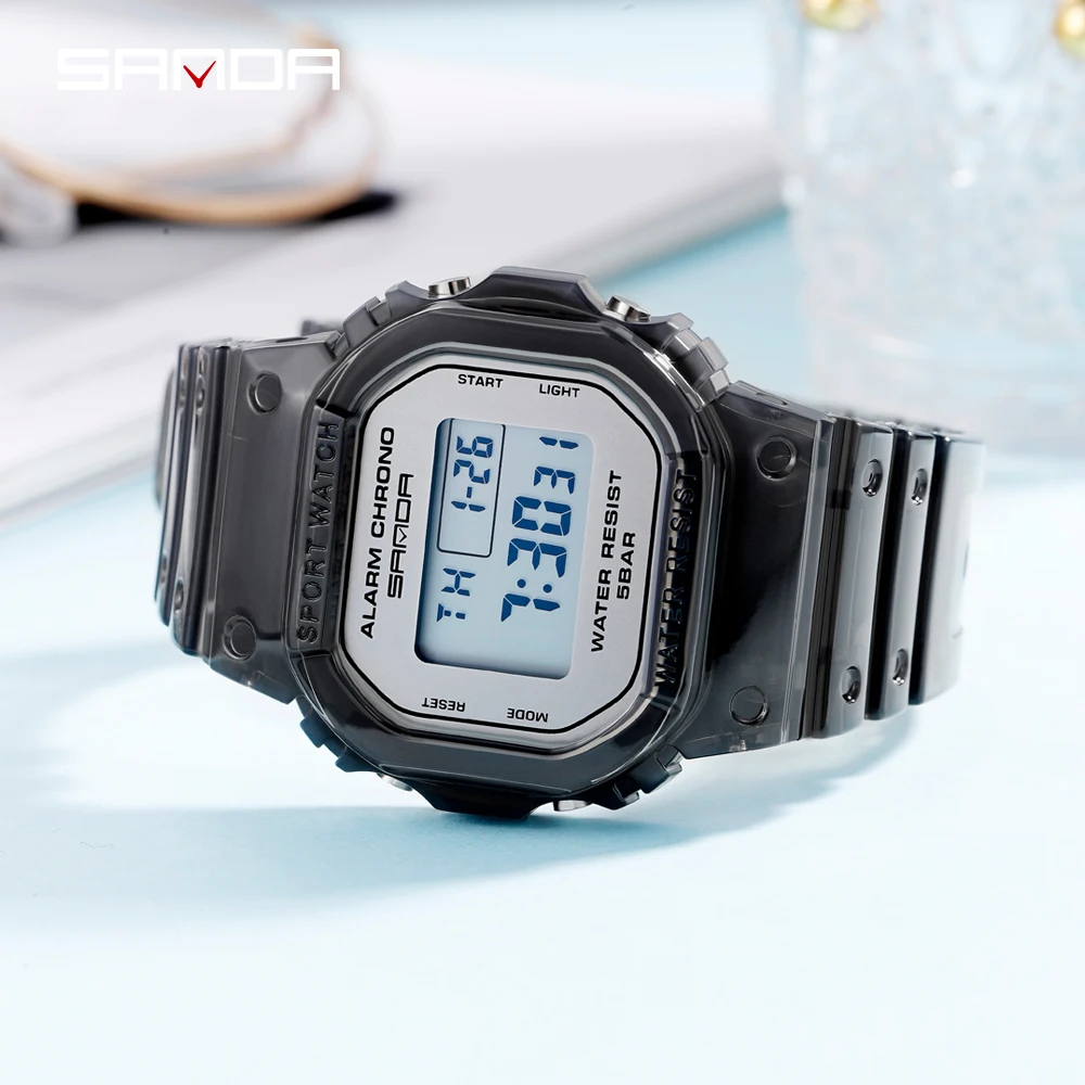 SANDA, модные спортивные часы, женские, прозрачный ремешок, светодиодные цифровые часы, женские электронные часы, женские часы 2009