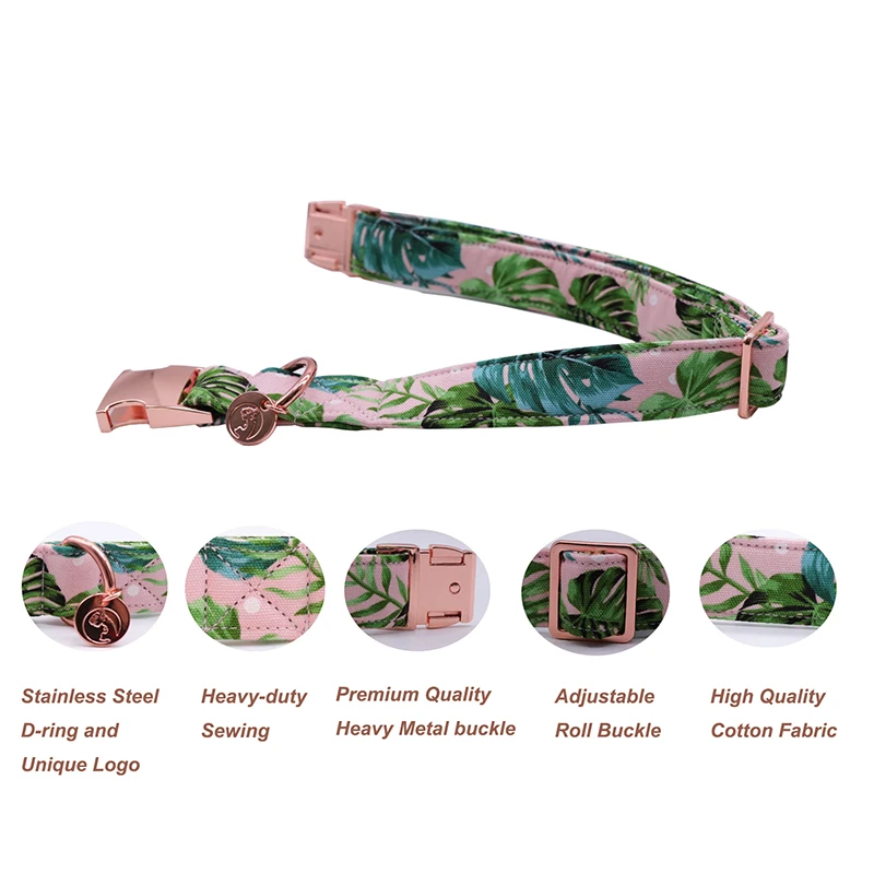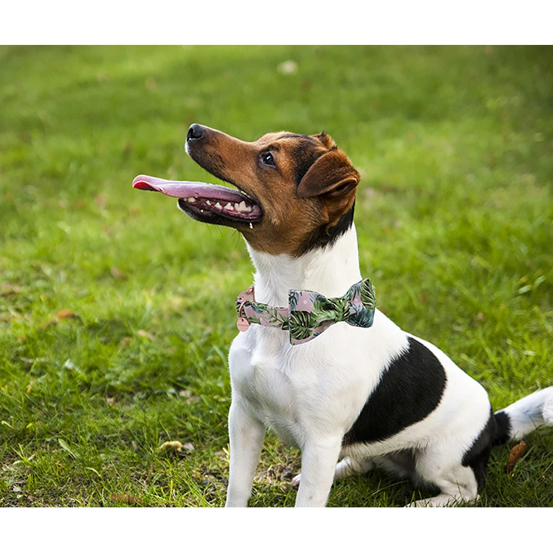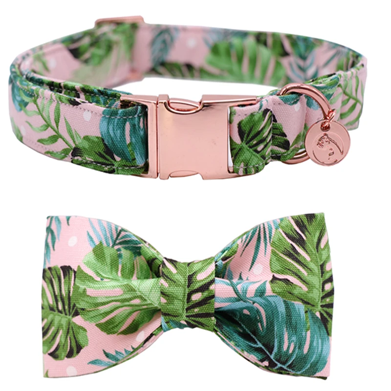 Ошейник и поводок для собак с зелеными листьями, набор с галстуком-бабочкой, индивидуальный Регулируемый ошейник из 100% хлопка для щенков, подарок на день рождения