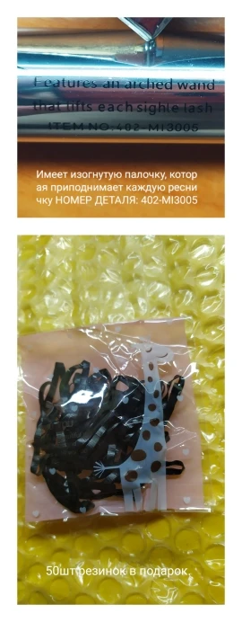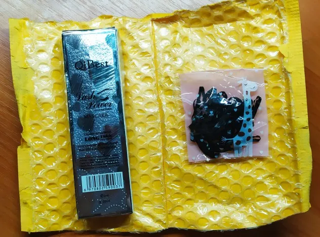 Доставка пришла за неделю до назначенного времени. Упаковано все в пузырчатый пакет. Пришло все целым. Продавец также положил внутрь пакетик с резинками и брошюру, мелочь, а приятно. Тушью пока не пользовалась.