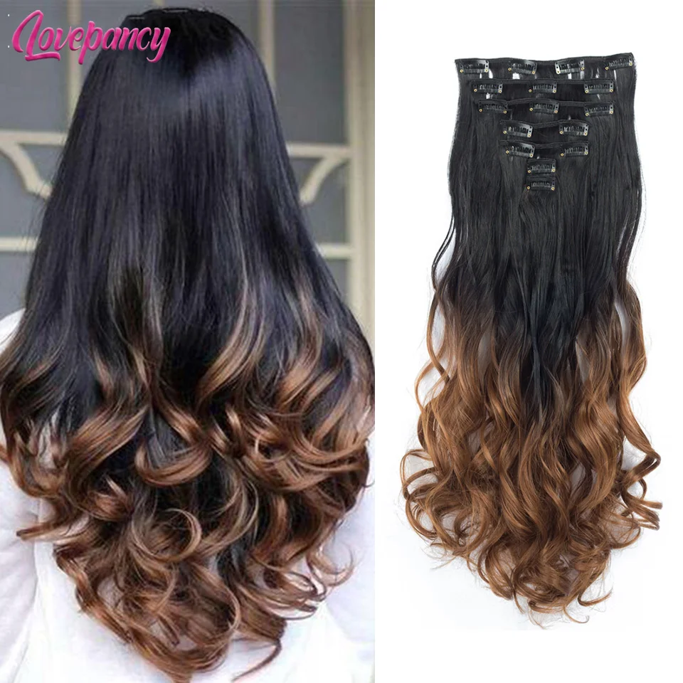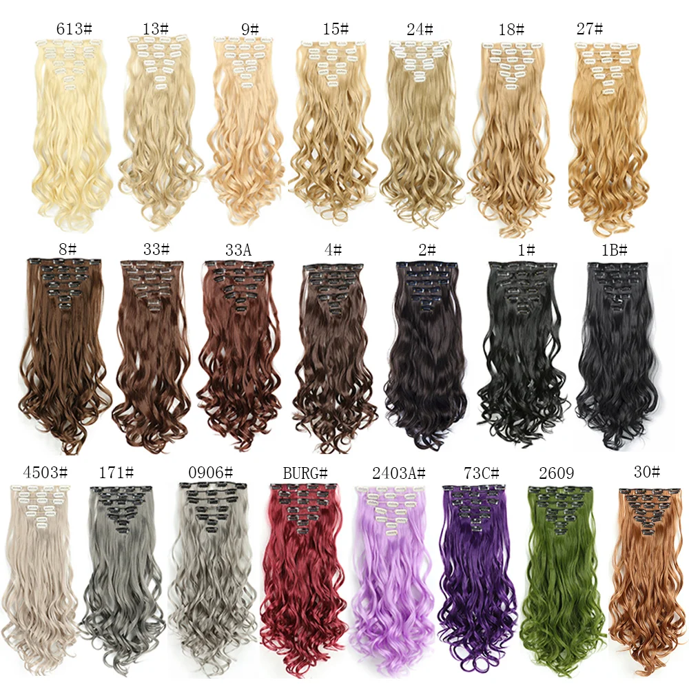 Красивые волосы, 22 дюйма, длинные вьющиеся волосы для наращивания, 16 клипов, синтетические волосы для наращивания на заколках