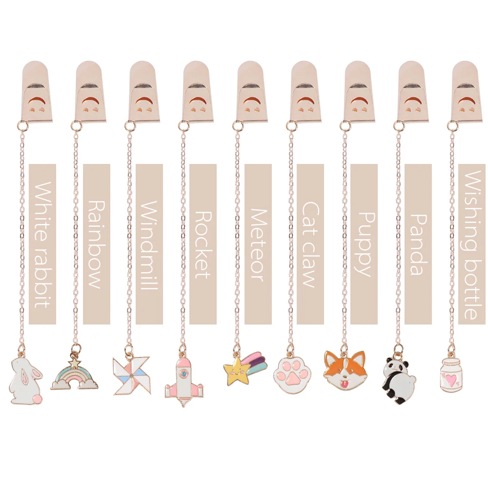 Металлическая подвеска-Закладка с мультяшными животными, 1 шт., зажим для страниц, панда, радуга, личность, Закладка-украшение, Маленькая подвеска