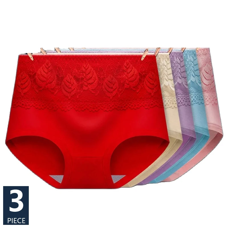 LANGSHAТрусики с высокой талией, 3 шт.комплект, Бесшовные женские трусы для похудения, Корректирующее белье, нижнее белье из мягкого хлопка, L XXL