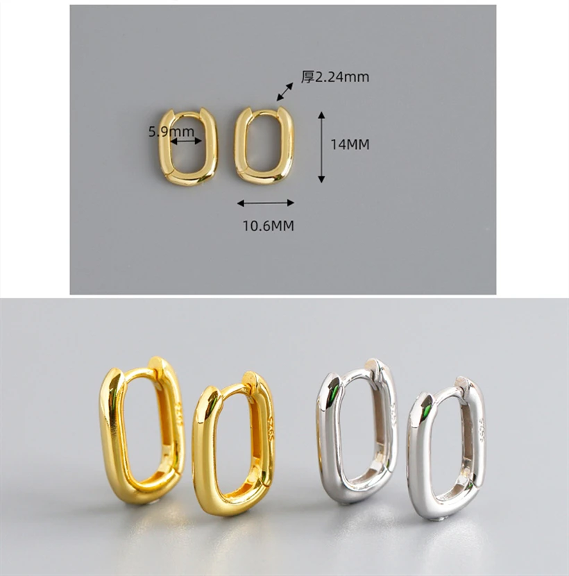Серьги из стерлингового серебра 925 пробы, модное ретро геометрическое овальное кольцо, круглые широкие Ушные Кольца, простые женские серебряные ушные украшения