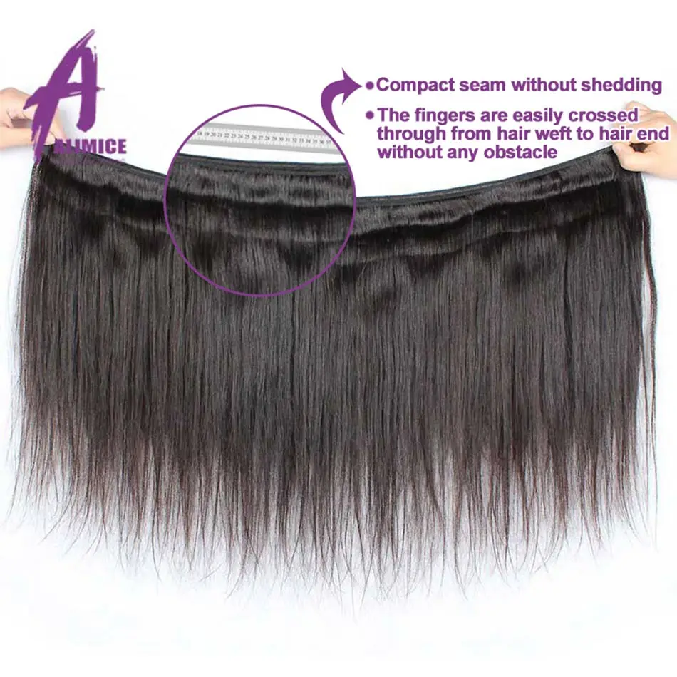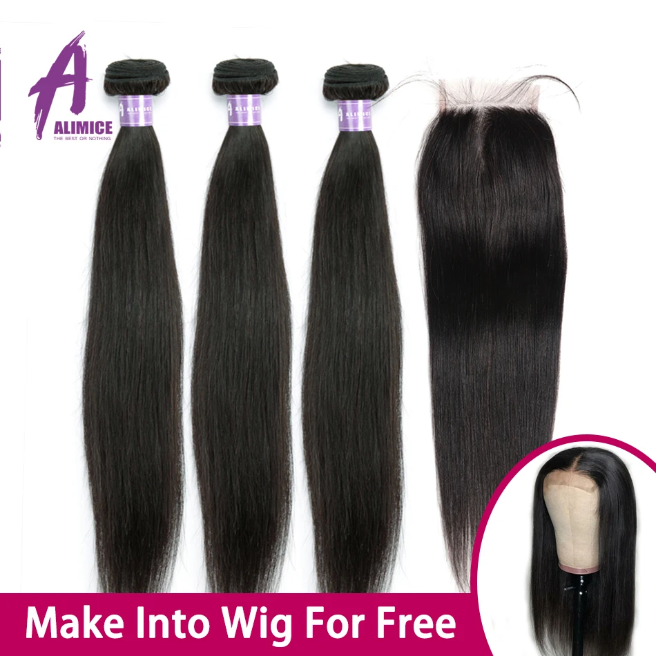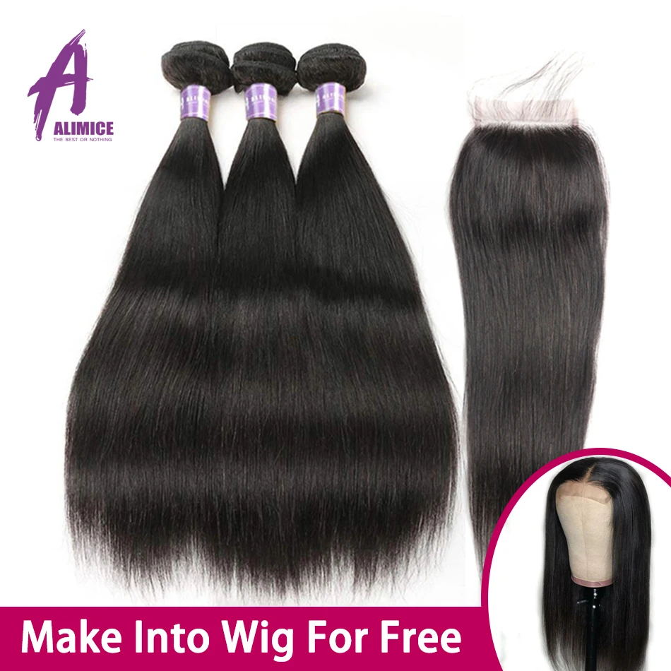 Alimice индийские прямые волосы, пучки с закрытыми волосами, 3 пучка волос для наращивания с закрытыми волосами, Remy, кружевные пучки