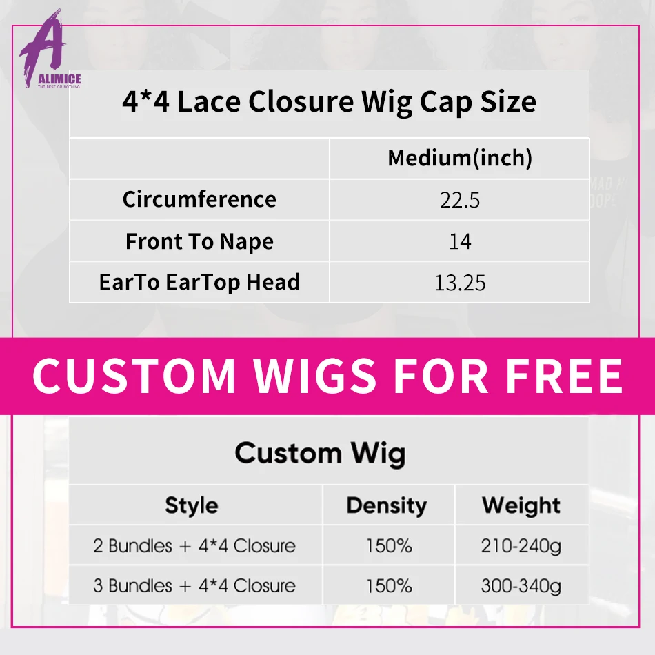Alimice Hair Brazilian Straight Human Hair Wig 150% Density Glueless Lace Closure Wigs Made by 2/3 Bundles With Closure