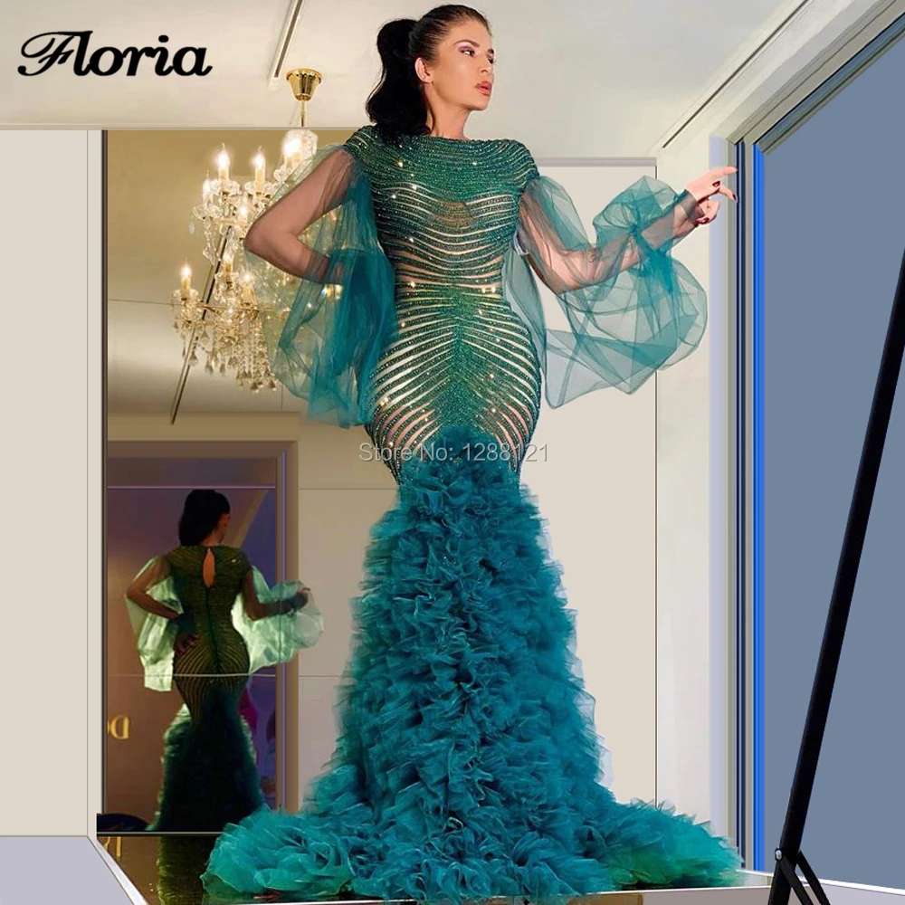 Женское вечернее платье-русалка, длинное зеленое платье для выпускного в Дубае, с жемчугом на заказ, на Средний Восток, Многоярусное, 2020