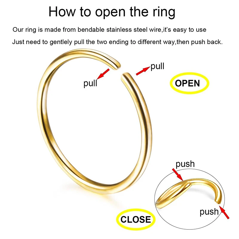 Мне подошло по размеру только самое маленькое кольцо, но я постоянно ношу его как истинный пирсинг в нос, мне нравится и выглядит натурально! Так что советую брать самые маленькие! Они кстати регулируются и вроде не ржавеют