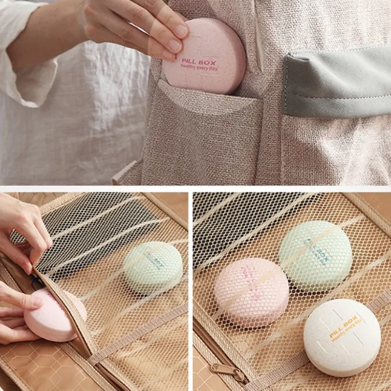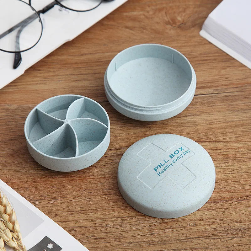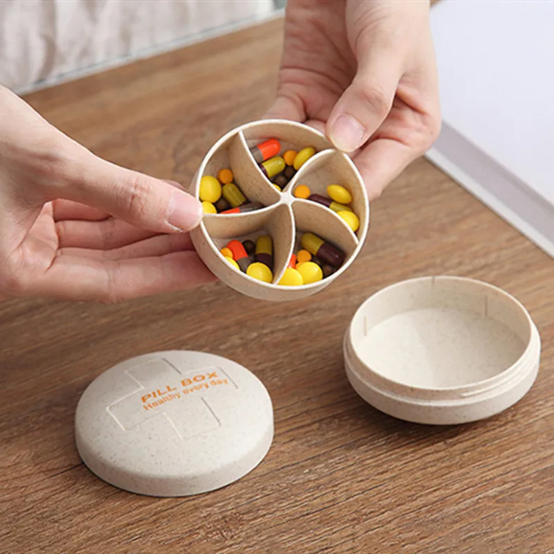 Портативный круглый чехол для таблеток, органайзер для таблеток с 5 отделениями, дорожный контейнер для таблеток, маленький контейнер для таблеток, контейнер из пшеничной соломы для лекарств