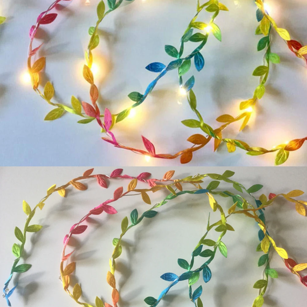 1. Многоцветная гирлянда с листьями и мини-светодиодами 100. Гибкая Зеленая проволока для внутреннего или наружного использования с теплыми белыми светодиодами, расположенными 9,5 см.