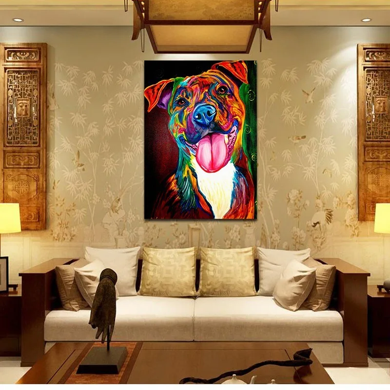 Красочный абстрактный принт собаки животных, холст, живопись, плакаты с животными и принты, настенные картины для украшения комнаты, без рамки